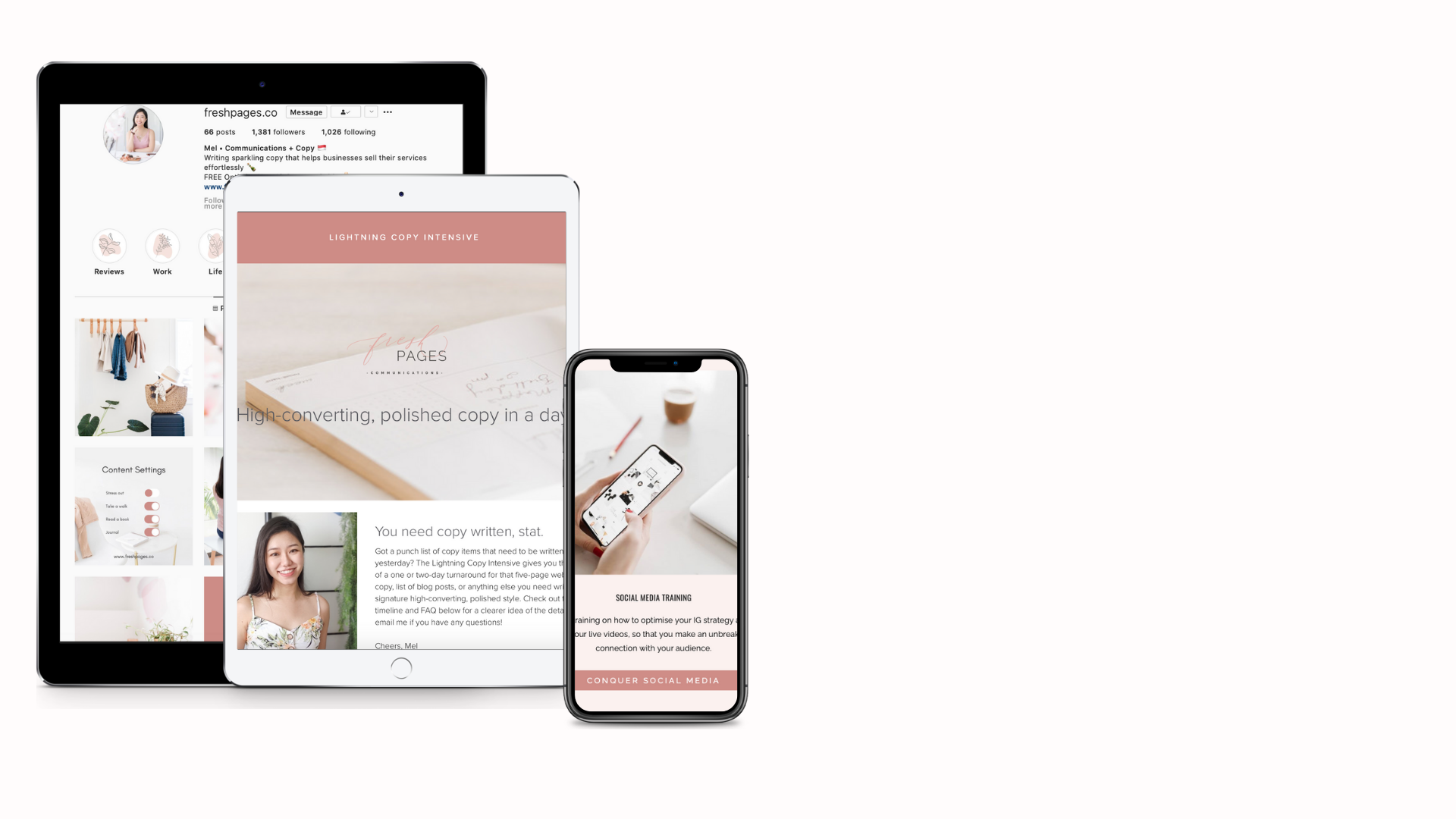 I realised that my fellow creative entrepreneurs were struggling with their brand messaging, so I was sharing tips on how they could write better website and social media content. That’s how I began Fresh Pages. From there, I refined my services to include done-for-you copy and consulting.